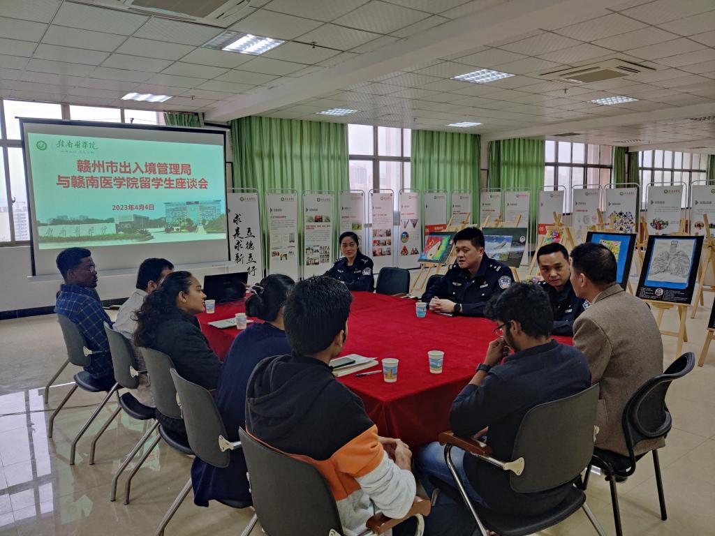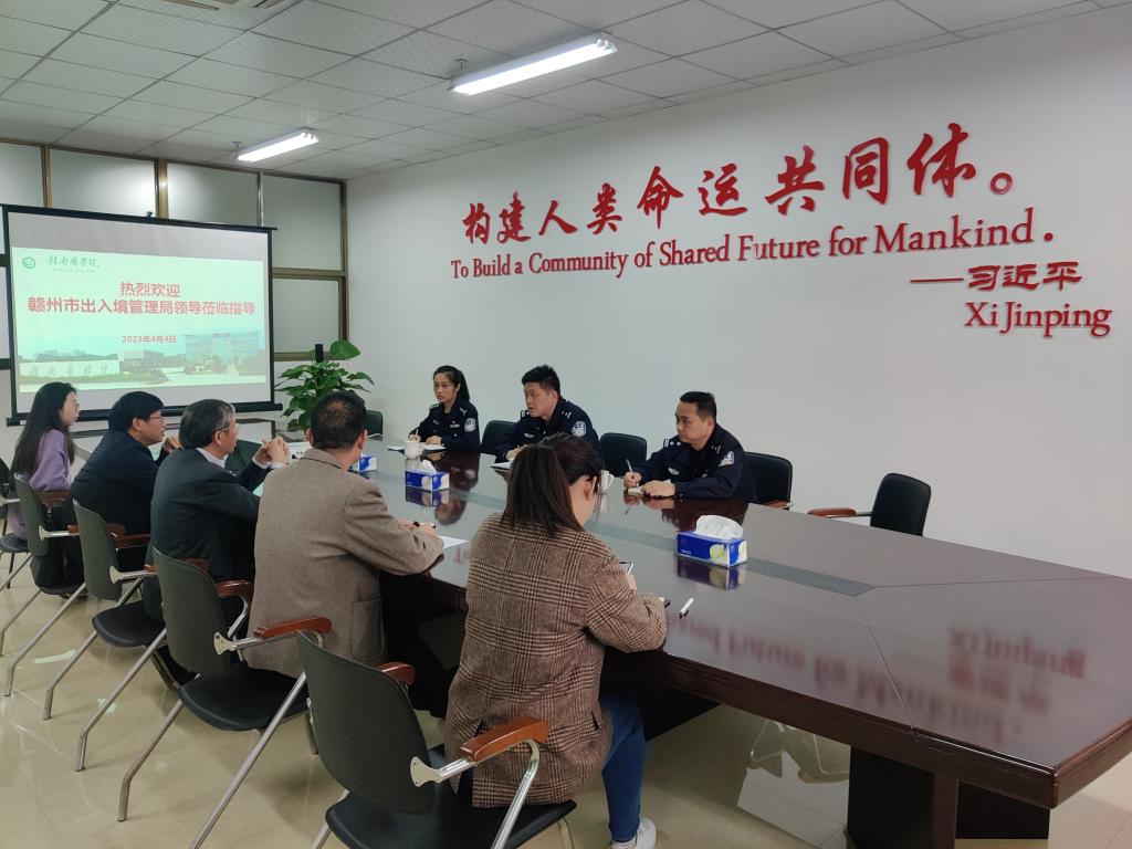 2023年4月4日上午,赣州市公安局出入境管理处副处长姜鸣川一行3人莅临赣南医学院国际教育学院指导工作。