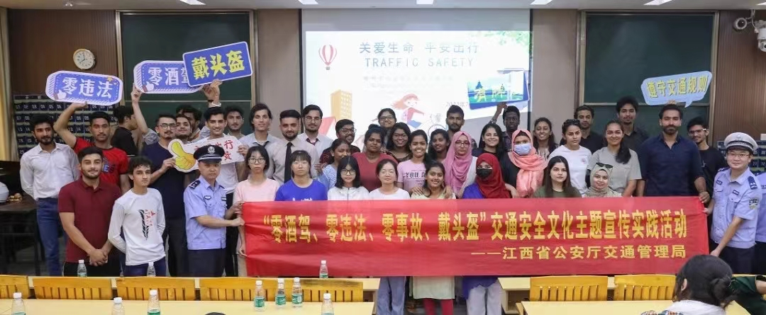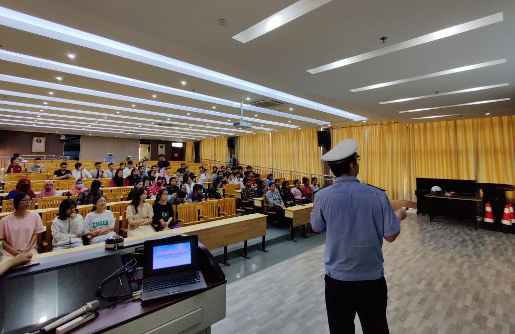 2023年7月17日,为帮助来华留学生树立交通安全防范意识和遵纪守法观念,有效预防和减少暑期安全事故的发生,度过一个安全、愉快的假期,国际教育学院专门为留学生组织了一场特别的暑期安全教育讲座。本次讲座特别邀请了赣州市蓉江新区公安分局交警大队及出入境民警进行现场授课,本次活动也吸引了很多暑期留校的中国学生参加。