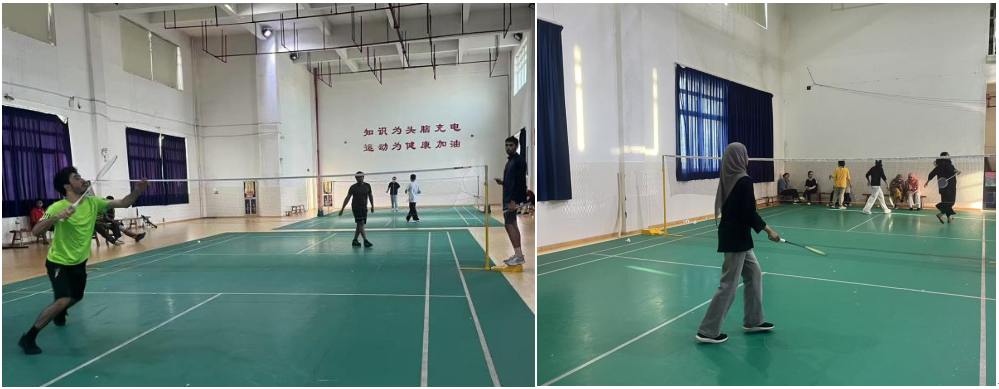 赛场上,选手们身手矫健,扣杀、劈吊、网前截击等精彩动作频现,激烈的角逐赢得现场观众阵阵喝彩。经过多轮激烈角逐,最终决出获奖名单:男子单打项目由2024级五年制学生DANISH SALEEM摘得桂冠,2022级学生FAISAL AKRAM荣获亚军,2021级学生MUHAMMAD MOAAZ MALIK斩获季军;女子单打项目则由2024级六年制学生SAMEENA FAZAL夺得冠军,同年级学生AYESHA SALEEM获得亚军,2024级五年制学生BUSHRA BASHARAT摘得季军。