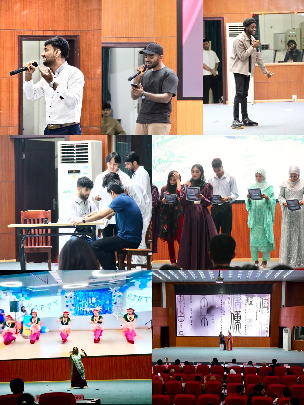 大赛由来自巴基斯坦、印度、坦桑尼亚、尼日利亚、斯威士兰等国的64名留学生20个精心编排的节目同台竞艺,表演形式涵盖中外歌曲独唱与合唱、非洲风情舞、巴基斯坦传统舞、印度曼尼普尔传统舞、诗歌朗诵及医学主题戏剧等,留学生的精彩表演为观众呈现了一场跨越国界的艺术盛宴。