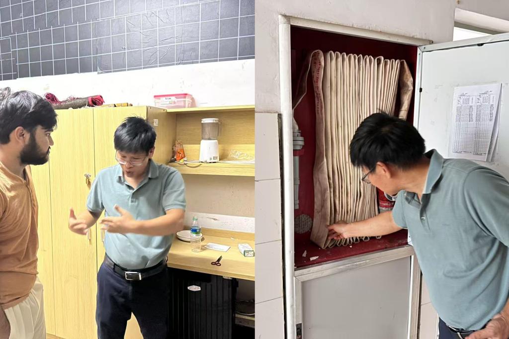 2025年7月13日,为加强暑期留校来华留学生安全管理,度过一个安全和谐的假期,国际教育学院副院长钟富有带领学院教师对留学生宿舍开展了安全隐患排查及卫生检查工作。