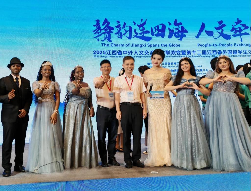 2025年9月26日,由江西省教育厅指导的,江西省教育国际合作与教师发展中心主办的2025年中外人文交流中秋联欢会在南昌隆重举行。学校党委常委、副校长刘志平受邀出席并亲自为我校留学生节目—歌曲表演《如愿》加油鼓劲。